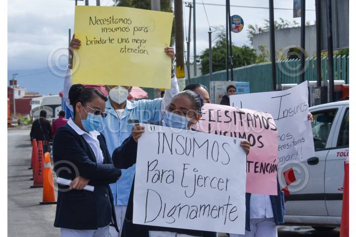 TOLUCA, ESTADO DE MÉXICO, 18JUNIO2021.- Enfermeras, médicos y personal auxiliar del tercer nivel del Centro Médico Lic. Adolfo López Mateos se manifestaron enfrente del nosocomio exigiendo insumos para poder seguro atendiendo a los pacientes, con una manta colocada en la fachada indicaron que se encuentran laborando bajo protesta. FOTO: CRISANTA ESPINOSA AGUILAR /CUARTOSCURO.COM