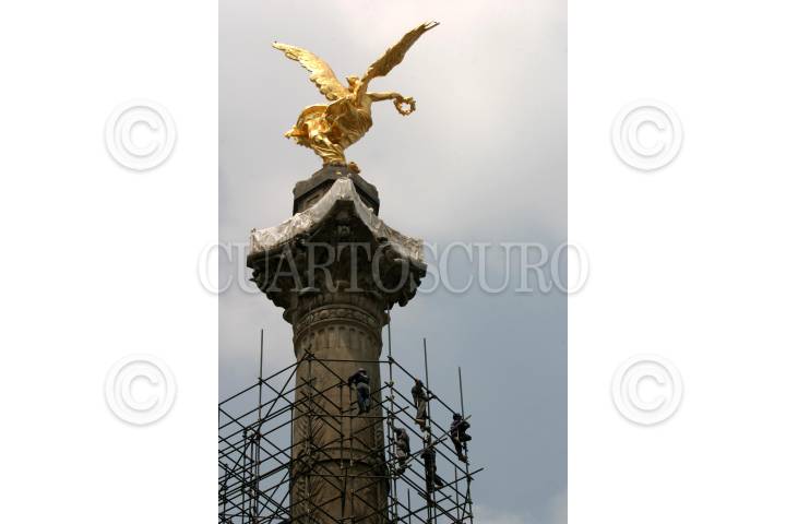 MEXICO, D.F., 08SEPTIEMBRE2006.- El Angel de la Independencia luce despejado de los andamios que varios meses lo rodearon para su remosamiento, aunque los trabajos continuan en el basamento los capitalinos volvemos a apreciar uno de los simbolos más representativos para los defeños. FOTO: MOISÉS PABLO/CUARTOSCURO.COM