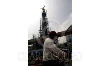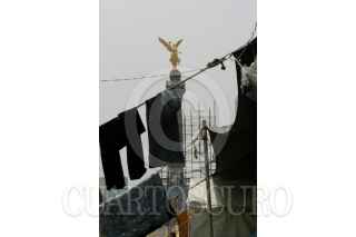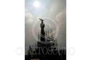MEXICO, D.F., 08SEPTIEMBRE2006.- El Angel de la Independencia luce despejado de los andamios que varios meses lo rodearon para su remosamiento, aunque los trabajos continuan en el basamento los capitalinos volvemos a apreciar uno de los simbolos más representativos para los defeños. FOTO: MOISÉS PABLO/CUARTOSCURO.COM