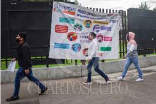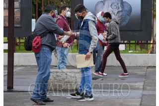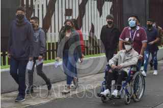 CIUDAD DE MÉXICO, 19JUNIO2021.- Dio inicio la primer fecha de aplicación del examen de la Comisión Metropolitana de Instituciones Públicas de Educación Media Superior (COMIPEMS) de admisión a nivel medio superior en las distintas sedes educativas, siguiendo las medidas sanitarias para evitar la propagación de Covid-19, como uso de cubrebocas, careta, aplicación de gel antibacterial y medición de temperatura. FOTO: MARIO JASSO/CUARTOSCURO.COM