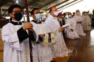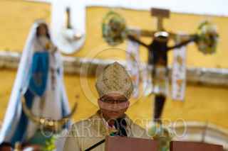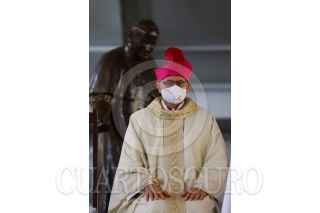 IZAMAL, YUCATÁN, 19JUNIO2021.- En el atrio del Santuario de Nuestra Señora Inmaculada Concepción de Izamal, el secretario de Estado de la Santa Sede del Vaticano, Pietro Parolin y el Nuncio Apostólico para México, Franco Coppola participaron en la consagración del Yucateco Fermín Sosa como nuevo Nuncio Apostólico de Papúa Nueva Guinea. FOTO: MARTÍN ZETINA/CUARTOSCURO.COM