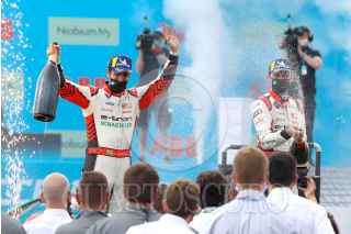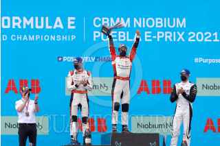 AMOZOC, PUEBLA, 19JUNIO2021.- Lucas Di Grassi de la escudería Audi Sport ABT Schaeffler se proclamó ganador de la primera carrera de la Fórmula E, en el autódromo Miguel Abed de Puebla. FOTO: MIREYA NOVO/CUARTOSCURO.COM
