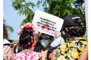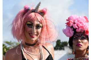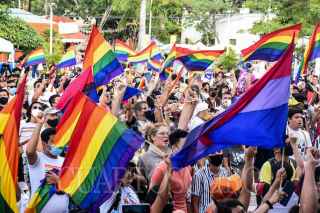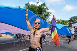 CANCÚN, QUINTANA ROO, 19JUNIO2021.- Alrededor de 500 personas de la comunidad LGBTTTIQPA participaron este sábado en la marcha conmemorativa al Orgullo Gay en el estado. La comitiva partió de malecón Tajamar sobre la avenida Bonampak y continuó sobre la Coba para ingresar al Parque de la Palapas, siendo éste el punto de reunión. Ondeando decenas de banderas multicolor y acompañados de consignas en contra de los crímenes de odio se continuó con la lucha de derrocar al “patriarcado”. FOTO: ELIZABETH RUIZ/CUARTOSCURO.COM
