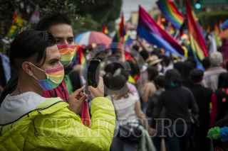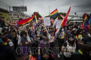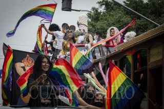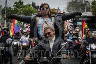 QUERÉTARO, QUERÉTARO, 19JUNIO2021.- Esta tarde se celebró el desfile del Orgullo LGBTTI+. Con cerca de 3 mil asistentes la marcha inició desde el tradicional mirador de la Cruz hasta el centro histórico. Una marcha que se auguraba solo en bicicleta y en auto sumó contingentes de personas a pie. Foto: DEMIAN CHÁVEZ / CUARTOSCURO.COM