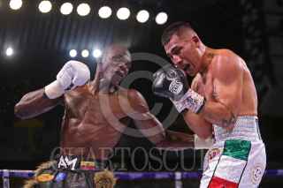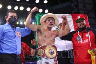 GUADALAJARA, JALISCO, 19JUNIO2021.- El boxeador Tijuanense Damián Sosa y el Boxeador Ecuatoriano Abel Mina diputaron titulo latinoamericano de la Organización Norteamericana de Boxeo (NABO), de la Organización Mundial de Boxeo (OMB), en donde el boxeador mexicano gano el cinturón, esto previo a la peleas de exhibición de la cartelera de la función boxística Tributo a los Reyes, realizado en el Estadio Jalisco. FOTO: FERNANDO CARRANZA GARCIA / CUARTOSCURO.COM