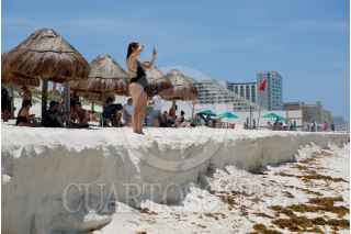 CANCÚN, QUINTANA ROO, 20JUNIO2021.- Los últimos días se ha agudizado el problema de la erosión en las playas principales de Cancún sumando el sargazo principalmente en Playa Delfines se ha disminuido la llegada de turistas por el problema. FOTO: ELIZABETH RUIZ /CUARTOSCURO.COM