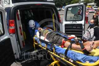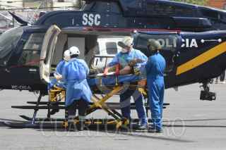 CIUDAD DE MÉXICO, 20JUNIO2021.- Un hombre, que resultó lesionado por descarga eléctrica cuando colocaba una antena de televisión, fue trasladado en un helicóptero del agrupamiento Cóndores de la SSC CDMX de la alcaldía Tláhuac hasta el estacionamiento de un centro comercial en la calzada Mexico-Tacuba para completar su traslado al hospital Rubén Leñero por una ambulancia del ERUM. FOTO: CRISNTIAN HERNÁNDEZ /CUARTOSCURO.COM