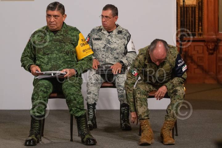 CIUDAD DE MÉXICO, 21JUNIO2021.- Andrés Manuel López Obrador, Presidente de México, encabezó la conferencia matutina en Palacio Nacional. Lo acompañaron Surit Berenice Romero Domínguez, encargada de Profeco; Rosa Icela Rodríguez, secretaria de Seguridad y Protección Ciudadana; Olga Sánchez Cordero, secretaria de Gobernación; Luis Cresencio Sandoval, secretario de la Defensa Nacional; Luis Rodríguez Bucio, comandante de la Guardia Nacional, y José Rafael Ojeda Durán, secretario de Marina. FOTO: MOISÉS PABLO/CUARTOSCURO.COM