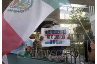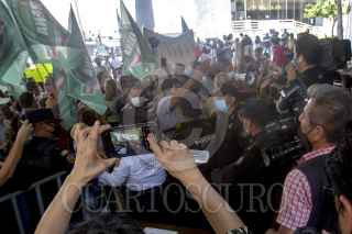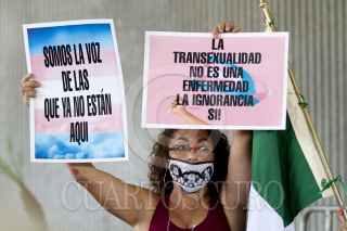 MONTERREY, NUEVO LEÓN, 21JUNIO2021.- Integrantes de la agrupación FRENA en Nuevo León, así como miembros de la comunidad Trans, maestros y simpatizantes de MC, acudieron a la explanada del Congreso del Estado para protestar en contra de modificaciones de los Diputados a la constitución estatal y la elección de cinco directores para estar al frente de organismos descentralizados. FOTO: GABRIELA PÉREZ MONTIEL / CUARTOSCURO.COM