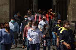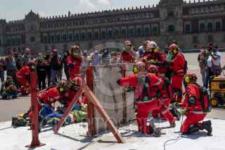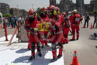 CIUDAD DE MÉXICO, 21JUNIO2021.- En el primer cuadro se realizó un simulacro encabezado por personal de Protección Civil, el cual tuvo como hipótesis un sismo de 8.1. En punto de las 11:30 los altavoces del sistema C5 anunciaron el ejercicio. Rescatistas realizaron un simulacro de rescate de una estructura. FOTO: MOISÉS PABLO/CUARTOSCURO.COM