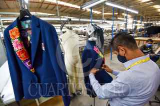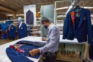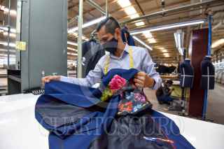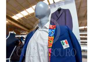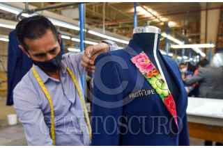 SANTIAGO TIANGUISTENCO, ESTADO DE MÉXICO, 21JUNIO2021.- Listos los trajes que serán utilizados por los atletas mexicanos que participarán en los Juegos Olímpicos Tokio 2020, durante dos semanas trabajadores de la empresa Industrias Haber’s, con más de 39 años de trabajo en el municipio de Santiago Tianguistenco, elaboraron 148 trajes que serán entregados en los siguientes días; con un diseño innovador que permitiera la comodidad de los atletas, los distingue un bordado en la solapa que elaboraron manos de artesanos oaxaqueños. Trabajaron 248 personas para elaborar el saco, 125 para el pantalón y 56 para las bermudas, estos trajes serán puestos a la venta al público. FOTO: CRISANTA ESPINOSA AGUILAR /CUARTOSCURO.COM