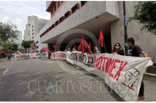 CIUDAD DE MÉXICO, 22JUNIO2021.- Trabajadores despedidos de la agencia Notimex, pertenecientes al sindicato SutNotimex, se manifestaron frente a la sede de la Secretaría de Relaciones Exteriores exigiendo al gobierno que resuelva la huelga que ya cumple con dieciséis meses, así como la restitución de la directora de Notimex, Sanjuana Martínez. FOTO: MOISÉS PABLO/CUARTOSCURO.COM