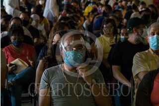 CIUDAD DE MÉXICO, 22JUNIO2021.- Adultos de 40 a 49 años comenzaron a ser vacunados en las inmediaciones de la Arena Ciudad de México, alcaldía Azcapotzalco. Las y los asistentes fueron inmunizados con el biológico de la farmacéutica AstraZeneca. A la par de esta localidad, Cuauhtémoc e Iztacalco iniciaron la aplicación de esta misma dosis. Hasta el momento en nuestro país se han administrado más de 40.2 millones de dosis de vacunas contra la Covid-19 y un 13.1% de la población se encuentra con esquema completo. FOTO: GALO CAÑAS/CUARTOSCURO.COM