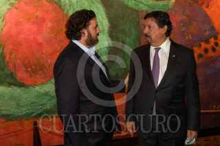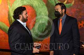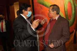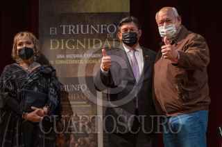 CIUDAD DE MÉXICO, 22JUNIO2021.- Napoleón Gómez Urrutia, Senador de la República por Morena, presentó su libro "El Triunfo de la Dignidad", en el Museo Nacional de Antropología, el cual esta editado por Porrúa. Lo acompañaron su esposa Oralia Casso, sus hijos Ernesto Gómez Casso y Napoleón Gómez Casso, además de personajes de la política como Víctor Castro Cosío, gobernador electo de Baja California Sur, y su esposa Patricia López Navarro, además de Porfirio Muñoz Ledo. También se hizo presente la periodista Sanjuana Martínez, directora de Notimex. FOTO: MOISÉS PABLO/CUARTOSCURO.COM