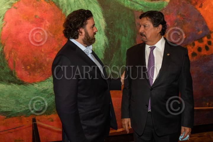 CIUDAD DE MÉXICO, 22JUNIO2021.- Napoleón Gómez Urrutia, Senador de la República por Morena, presentó su libro "El Triunfo de la Dignidad", en el Museo Nacional de Antropología, el cual esta editado por Porrúa. Lo acompañaron su esposa Oralia Casso, sus hijos Ernesto Gómez Casso y Napoleón Gómez Casso, además de personajes de la política como Víctor Castro Cosío, gobernador electo de Baja California Sur, y su esposa Patricia López Navarro, además de Porfirio Muñoz Ledo. También se hizo presente la periodista Sanjuana Martínez, directora de Notimex. FOTO: MOISÉS PABLO/CUARTOSCURO.COM