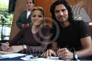 MÉXICO, D.F. 09SEPTIEMBRE2006.- Silvia Navarro y Diego Olivera, protagonistas de la telenovela Montecristo, firmaron autógrafos dentro de las instalaciones de Azteca Digital. FOTO: Iván Stephens/CUARTOSCURO.COM
