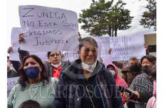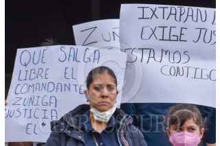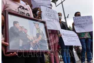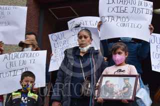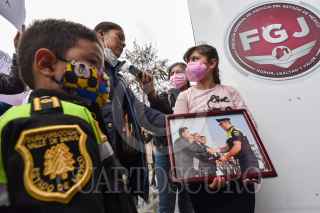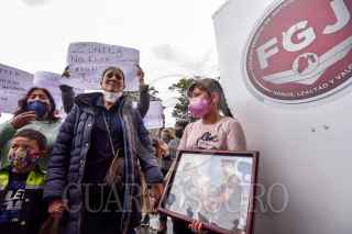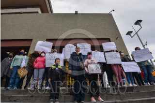 TOLUCA, ESTADO DE MÉXICO, 23JUNIO2021.- Familiares, amigos y compañeros de José Luis “N” comisario de Seguridad Pública Municipal de Valle de Bravo detenido por elementos de la Fiscalía General de Justicia del Estado de México (FGJEM) presuntamente por filtrar información de operativos y actividades oficiales a grupos del narcotráfico, se manifestaron en las instalaciones de la fiscalía mexiquense exigiendo sea conforme a ley la investigación del comisario. FOTO: CRISANTA ESPINOSA AGUILAR /CUARTOSCURO.COM