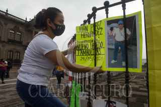 MONTERREY, NUEVO LEÓN, 24JUNIO2021.- Familiares de Desaparecidos en la carretera Monterrey-Nuevo Laredo, se manifestaron en las afueras del Palacio de Gobierno para exigir se atienda al menos 73 casos de desaparición forzada en el trayecto de Nuevo León a Tamaulipas en lo que va del 2021, según datos de los familiares. FOTO: GABRIELA PÉREZ MONTIEL / CUARTOSCURO.COM
