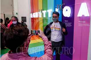 CIUDAD DE MÉXICO, 24JUNIO2021.- Con motivo del mes del orgullo LGBTTTIQPA+, el museo de Memoria y Tolerancia Inauguró la exposición “LGTB + allá del arcoíris”, muestra que busca acoger a todas, todos y todos los integrantes de dicha comunidad, así como sensibilizar a la población sobre dicha minoría que constantemente es atacada y violentada. Actualmente, nuestro país ocupa el segundo lugar a nivel mundial en crímenes cometidos por la homofobia. FOTO: GALO CAÑAS/CUARTOSCURO.COM