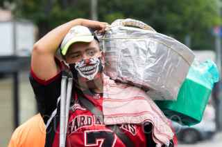 CIUDAD DE MÉXICO, 24JUNIO2021.- Un joven con cubrebocas de payaso vende tacos de canasta en la Merced. FOTO: MOISÉS PABLO/CUARTOSCURO.COM