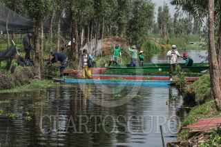 CIUDAD DE MÉXICO 24JUNIO2021.- Marina Robles García, secretaria del Medio Ambiente, encabezó el recorrido por la zona de humedales en el Parque Ecológico de Xochimilco y San Gregorio, en dicho recorrido se observaron los trabajos de remodelación y limpieza en ambas zonas de los humedales. Así mismo la secretaría informó que en próximas fechas se presentará el programa para la restauración de humedales que fueron removidos por la construcción del puente vehicular Periférico-Cuemanco. FOTO: ROGELIO MORALES /CUARTOSCURO.COM
