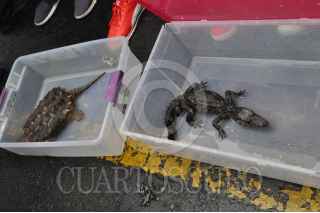 CIUDAD DE MÉXICO, 24JUNIO2021.- Tres personas fueron detenidas por elementos de la policía capitalina en el Cruce de Viaducto y Xochicalco, en la colonia Narvarte, luego de que al efectuarles una revisión les encontraran un caimán y una tortuga caimán; los sujetos y los animales fueron puestos a disposición del agente del ministerio público en la FEDAPUR, de la fiscalía capitalina FOTO: CRISTIAN HERNÁNDEZ/CUARTOSCURO.COM