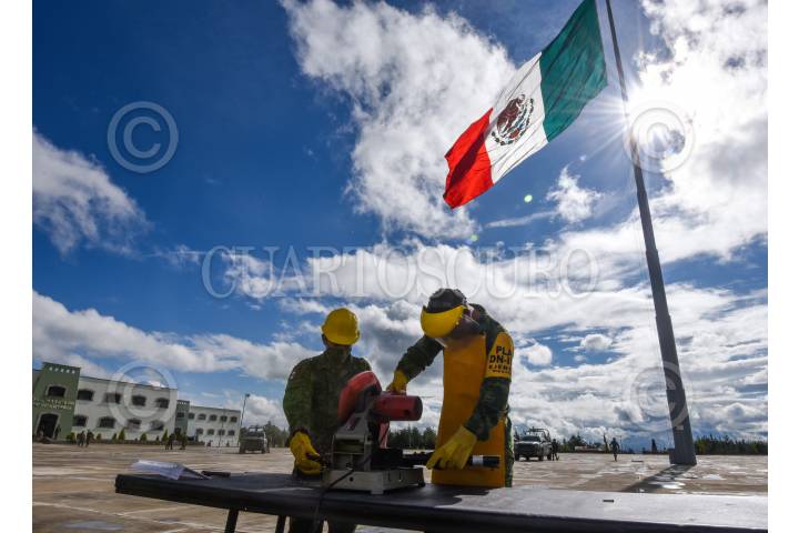 SANTA MARÍA RAYÓN, ESTADO DE MÉXICO, 25JUNIO2021.- Elementos de la 22 Zona Militar de Rayón realizaron la destrucción de armas de fuego aseguradas y puestas a disposición de la Secretaria de la Defensa Nacional, en total se destruyen 317 armas cortas y largas a través del medio de corte. FOTO: CRISANTA ESPINOSA AGUILAR /CUARTOSCURO.COM