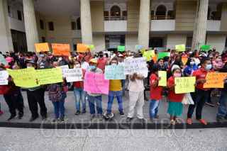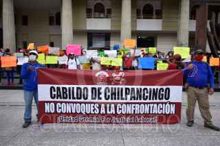 CHILPANCINGO, GUERRERO, 25JUNIO2021.- Trabajadores de la Sección XIV del Sindicato Independiente del Sindicato Único de Servidores Públicos del Estado de Guerrero (SUSPEG), cumplieron tres días de protesta exigiendo el cumplimiento de 20 minutas de trabajo firmadas por la actual administración. Desde las 10:00 horas de este viernes cerca de 200 trabajadores se instalaron en la entrada principal del edificio del ayuntamiento para lanzar consignas en contra del alcalde Antonio Gaspar Beltrán, exigiéndole el pago del bono del día del padre, pago retroactivo de salarios y aumento salarial del 2021 entre otros adeudos. En entrevista el líder sindical Domingo Salgado Martínez mostró copias de las 20 minutas que fueron firmadas por la administración actual, el presidente municipal y el ex presidente de la comisión de derechos humanos del estado Ramón Navarrete Magdaleno. FOTO: DASSAEV TÉLLEZ ADAME/CUARTOSCURO.COM