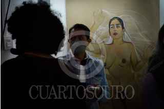 CIUDAD DE MÉXICO, 25JUNIO2021.- Fue inaugurada la exposición "Manifiesto: El Futuro es Queer" en la Galería PRPGMX como parte del ciclo "Entre lenchas, vestidas y musculocas" que organiza la Secretaría de Cultura de la capital. FOTO: MARIO JASSO/CUARTOSCURO.COM