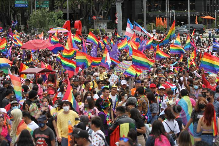CIUDAD DE MÉXICO, 26JUNIO2021.- Miles de integrantes de la comunidad LGBTTTIQ+ marcharon por los derechos de la Diversidad sexual, en el 43 Aniversario de Marcha por el Orgullo. La protesta inició en el Ángel de la Independencia y finalizó en el Zócalo capitalino. FOTO: GRACIELA LÓPEZ /CUARTOSCURO.COM