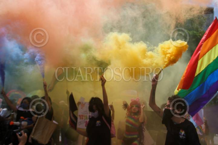 CIUDAD DE MÉXICO, 26JUNIO2021.- Miles de integrantes de la comunidad LGBTTTIQ+ marcharon por los derechos de la Diversidad sexual, en el 43 Aniversario de Marcha por el Orgullo. La protesta inició en el Ángel de la Independencia y finalizó en el Zócalo capitalino. FOTO: GRACIELA LÓPEZ /CUARTOSCURO.COM