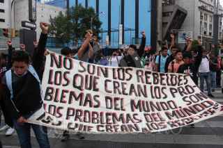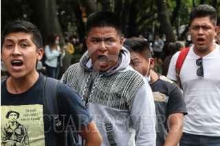 CIUDAD DE MÉXICO 26JUNIO2021.- Como 26 marcado en el calendario, padres, estudiantes y colectivos en defensa de los derechos humanos marcharon del Ángel de la Independencia al Antimonumento de los 43 en protesta y exigir justicia por la desaparición de los estudiantes de la Normal Rural Isidro Burgos en Igula Guerrero el 26 de septiembre del 2014. FOTO: ROGELIO MORALES /CUARTOSCURO.COM