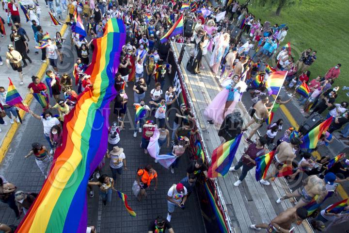 MONTERREY, NUEVO LEÓN, 26JUNIO2021.- Miles de personas miembros de la comunidad LGBT+ en la entidad, se congregaron en el centro de la ciudad de Monterrey para realizar la vigésima Marcha de la Diversidad. FOTO: GABRIELA PÉREZ MONTIEL / CUARTOSCURO.COM