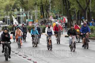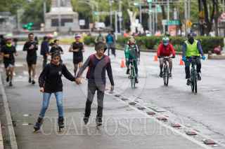 CIUDAD DE MÉXICO, 27JUNIO2021.- Pese a la pertinaz lluvia que se mantuvo este domingo, decenas de familias salieron a rodar en el paseo ciclista de avenida Reforma. FOTO: MOISÉS PABLO/CUARTOSCURO.COM