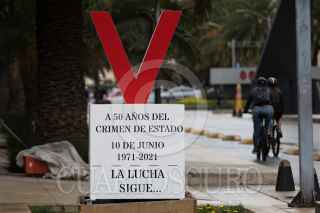 CIUDAD DE MÉXICO, 27JUNIO2021.- Se colocó el pasado 10 de junio un antimonumento por el 50 aniversario del Halconazo en la esquina de avenida Juárez y Humboldt, este con el objetivo de recordar y pedir justicia por los jóvenes estudiantes que fueron asesinados en el Casco de Santo Tomás. FOTO: MOISÉS PABLO/CUARTOSCURO.COM