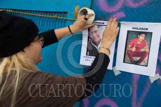 CIUDAD DE MÉXICO, 27JUNIO2021.- Un grupo feminista, integrado por mujeres de todas las edades, realizaron el tendedero del acosador, violador, padres irresponsables; al pie del Monumento de la Revolución. FOTO: VICTORIA VALTIERRA/CUARTOSCURO.COM