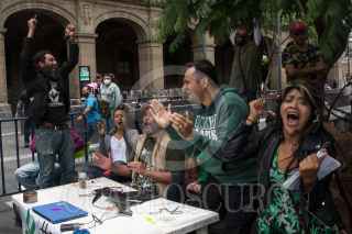 CIUDAD DE MÉXICO, 28JUNIO2021.- Ciudadanos consumidores de la cannabis celebraron la declaratoria de inconstitucionalidad sobre la prohibición del uso lúdico y recreativo de la marihuana en la Suprema Corte de Justicia de la Nación. El proyecto propone eliminar de la Ley General de Salud a la mariguana como droga ilícita y privilegiar el derecho a decidir de las personas alcanzó mayoría calificada en su votación, al obtener 8 votos de los 11 ministros del Pleno de la Corte. Desde el día de ayer integrantes del Plantón 4:20, que está instalado en el Senado desde hace más de un año, se trasladaron frente al recinto de la SCJN para seguir de cerca la sesión. Entre los presentes estuvo José Rivera, presidente del Movimiento Cannábico Mexicano, junto con su familia, quienes celebraron junto con amigos tras escuchar la resolución del máximo tribunal del país. FOTO: MOISÉS PABLO/CUARTOSCURO.COM