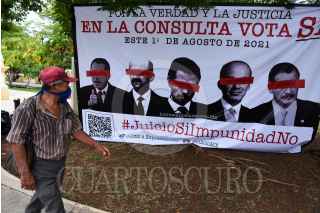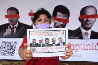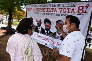 CAMPECHE, CAMPECHE, 28JUNIO2021.- Mediante una campaña informativa morenistas invitaron a la ciudadanía a participar y votar en la consulta popular “#JuicioSiImpunidadNo" para que los Ex Presidente de México sean enjuiciados por diversos delitos, desde el mandato de Carlos Salinas de Gortari. La consulta inicia el próximo 1 de agosto donde se espera que salgan a votar 37 millones de mexicanos. FOTO: MICHAEL BALAM/CUARTOSCURO.COM