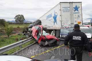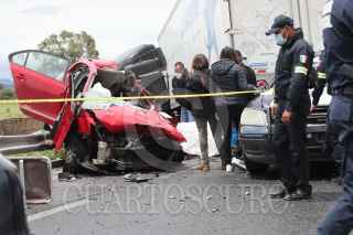 IXTAPALUCA, ESTADO DE MÉXICO, 28JUNIO2021.- Dos personas perdieron la vida cuando viajaban en su vehículo al ser impactados por un tráiler en el Circuito Exterior Mexiquense, a la altura del kilómetro 79, en el municipio de Ixtapaluca. FOTO: CRISTIAN HERNÁNDEZ/CUARTOSCURO.COM