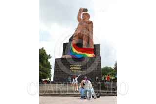 GUANAJUATO, GUANAJUATO, 28JUNIO2021.- Por primera vez en la historia de Guanajuato, la bandera del orgullo gay ondeó en el monumento del Pípila. De acuerdo con el gobierno municipal esta acción es un mensaje de respeto hacia la diversidad sexual de todas las personas de México y el mundo. FOTO: ESTEBAN HERNÁNDEZ/CUARTOSCURO.COM