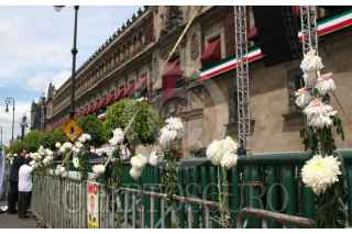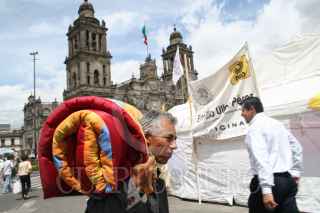 MÉXICO, D.F. 14SEPTIEMBRE2006.- En la plancha del Zócalo, el ambiente ante la celebración del grito de independencia comienza a acelerarse. Junto al templete donde López Obrador pronuncia sus discursos en las asambleas, se ubica la campana que resonará en manos se AMLO. FOTO: PAOLA HIDALGO/CUARTOSCURO.COM