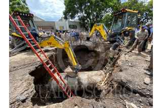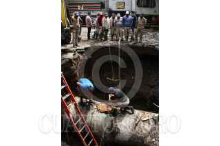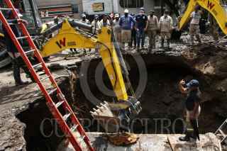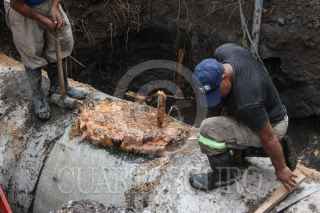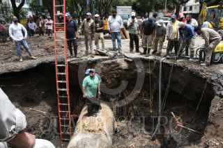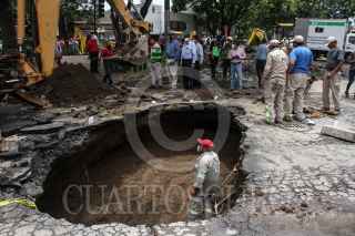 CIUDAD DE MÉXICO 29JUNIO2021.- Continúa la reparación en un tubo de agua potable de aproximadamente 48 pulgadas, el cual causó una fuerte fuga registrada desde el pasado domingo. Así mismo dicha fuga ocasionó la aparición de un socavón de al menos 3.5 metros de diámetro a escasos metros del siniestro. En este sentido hasta el momento se han registrado al menos 15 hogares afectados y 4 establecimientos comerciales, esto en la avenida Canal de Miramontes, de la colonia Centinela de la alcaldía Coyoacán. FOTO: ROGELIO MORALES /CUARTOSCURO.COM