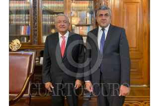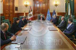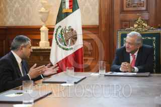 CIUDAD DE MÉXICO, 29JUNIO2021.- Andrés Manuel López Obrador, presidente de México, se reunió en Palacio Nacional con Zurab Pololikasvili, secretario de la Organización Mundial de Turismo, quien le entregó un reconocimiento al mandatario mexicano por la implementación de la política turística durante la pandemia de Covid-19. FOTO: PRESIDENCIA /CUARTOSCURO.COM