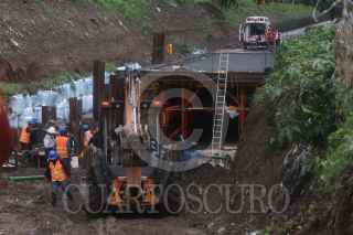 TLALNEPANTLA, EDOMEX, 29JUNIO2021.- Al menos ocho trabajadores resultaron lesionados al ocurrir un derrumbe al interior de las obras para entubar el Río de los Remedios, casi al cruce con la Autopista México-Pachuca, en el municipio de Tlalnepantla, en el Estado de México. FOTO: CRISTIAN HERNÁNDEZ /CUARTOSCURO.COM