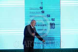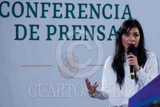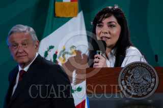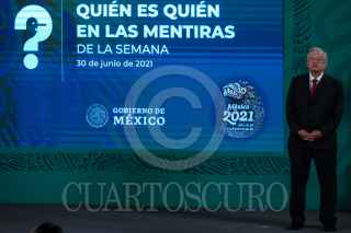 CIUDAD DE MÉXICO, 30JUNIO2021.- Andrés Manuel López Obrador, presidente de México, encabezó la conferencia matutina donde presentó a Ana Elizabeth García Vilchis como encargada de la nueva sección “Quién es quién en las mentiras de la semana”, espacio anunciado en semanas anteriores por el presidente para “exhibir” a aquellos periodistas faltos de ética o que calumnian, según el mandatario. FOTO: GALO CAÑAS/CUARTOSCURO.COM