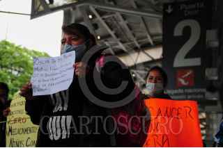 CIUDAD DE MÉXICO, 30JUNIO2021.- Padres de niños con cáncer se manifestaron afuera de la Terminal 1 del Aeropuerto Internacional de la Ciudad de México (AICM) para exigir la entrega de medicamentos oncológicos para el tratamiento de sus hijos. FOTO: DANIEL AUGUSTO /CUARTOSCURO.COM