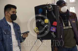 CIUDAD DE MÉXICO. 30JUNIO2021.- José Abel Flores Abogado y Javier Sánchez Becerra, en rueda de prensa en oficinas de Comerciantes Ambulantes organizados; hablaron sobre la situación jurídica de la líder Alejandra Barrios, detenida hace unos días por la FJ de la Capital. FOTO: VICTORIA VALTIERRA/CUARTOSCURO.COM