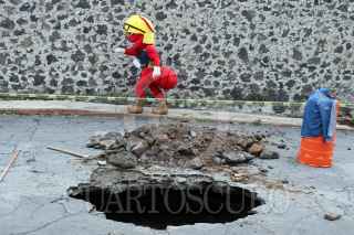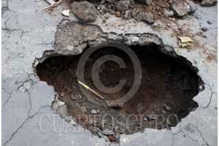 CUERNAVACA, MORELOS, 30JUNIO2021.- Un socavón de mediano tamaño se abrió en la calle Narciso Mendoza en el poblado de Acapantzingo. El hoyo de metro y medio de largo y profundidad se abrió durante la mañana de este miércoles. Al sitio llegaron trabajadores del Sistema de Agua Potable y Alcantarillado de Cuernavaca para trabajar en el área, por lo que la circulación fue cerrada. FOTO: MARGARITO PÉREZ RETANA / CUARTOSCURO.COM