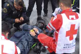 CIUDAD DE MÉXICO, 30JUNIO2021.- Paramédicos de la Cruz Roja atendieron a una mujer motociclista que sufrió una caída en su moto debido a las lluvias en Avenida Rósales e Hidalgo en la colonia Tabacalera. FOTO: ARMANDO MONROY / CUARTOSCURO.COM