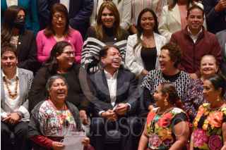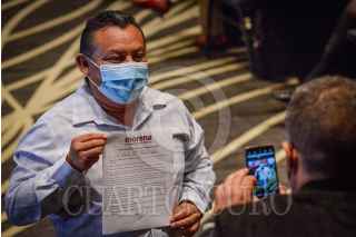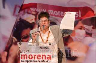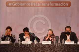 CIUDAD DE MÉXICO, 01JULIO2021.- Eloisa Vivanco Esquide, presidenta de la Comisión Nacional de Honestidad y Justicia de Morena; Bertha Luján, presidenta del Consejo Nacional de Morena; Mario Delgado, dirigente nacional de Morena; Citlalli Hernández, secretaria general de Morena; Ivonne Cisneros, integrante de la comisión de Encuestas de Morena y Alejandro Peña, responsable nacional de Defensa y Promoción del Voto, encabezaron la reunión con los alcaldes locales electos de Morena. FOTO: MARIO JASSO/CUARTOSCURO.COM